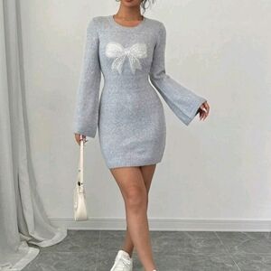 Bow Collar Elegant Long Sleeve Sweater Dress