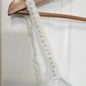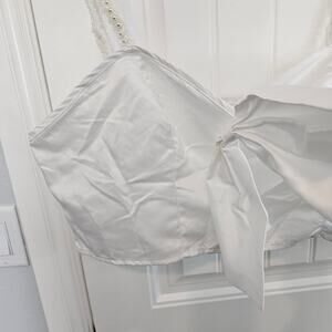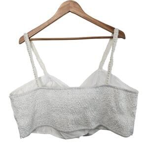 Bow Crop Top Cami Women 2X White Lace Beaded Straps Bralette Coquette Girly Boho