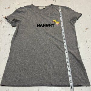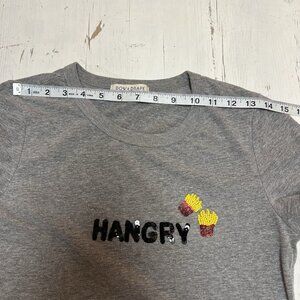 Gray short sleeve tee with 'Hangry' text. Fun and casual style.