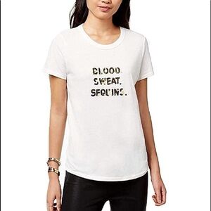 Bow & Drape Womens Blood Sweat Sequins Slogan Tee