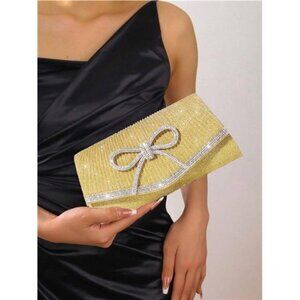Rhinestone Bow Clutch: this envelope evening bag features a textured, shimmery material, and is finished with a sparkly diamante bow and rhinestone at the front, which emit a splendid radiance under light, creating a stunning and elegant decorative effect