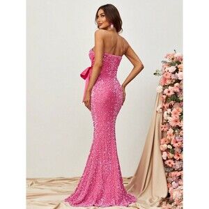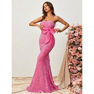 Bow Front Sequin Tube Mermaid Dresses Sequins Maxi Strapless Dress Size S #706