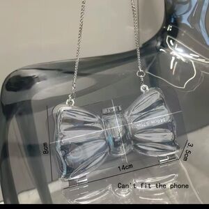 Elegant gold bow-shaped clutch with a chic chain strap. Perfect for adding a touch of glamour to any outfit.
