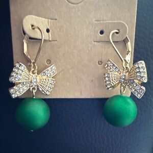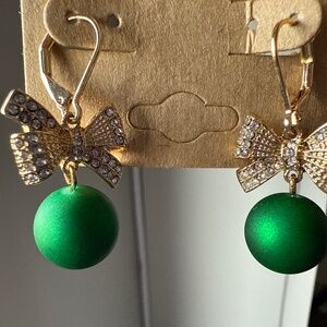 Napier Gold Tone Bow Drop Earrings. Add a touch of elegance with these stunning green bow earrings. Perfect for any occasion.