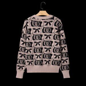 Step out in style with this unique knit sweater featuring a trendy bow and horseshoe pattern. Perfect for creating a chic, casual, or western-inspired look, this long-sleeve crewneck sweater combines comfort with a playful and stylish design. The soft knit fabric and relaxed fit make it an ideal choice for fall fashion and chilly weather. Pair this black and beige pullover with jeans, skirts, or shorts for a versatile outfit that will keep you cozy and fashionable all season long. With its distinct print and comfortable feel, this sweater is a must-have wardrobe essential.