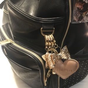 Bow Keychains. Can be custom made in different shapes and sizes. Can be made with silver, gold and rose gold hardware. Look great on Itzy Ritzy diaper bags.