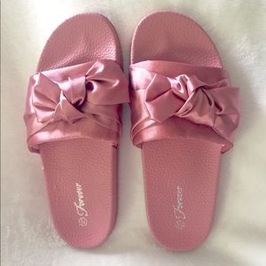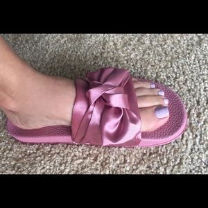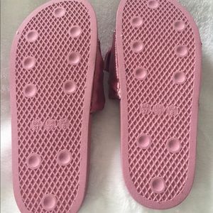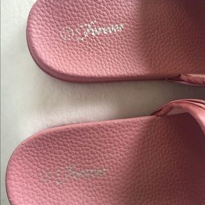 Gently worn ๐ Slides. Left shoe has what appears to be a small piece of glue which I showed in picture but really not noticeable in person.