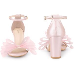 Bow Tie Ankle Strap Chunky High Heels Sandals Pink