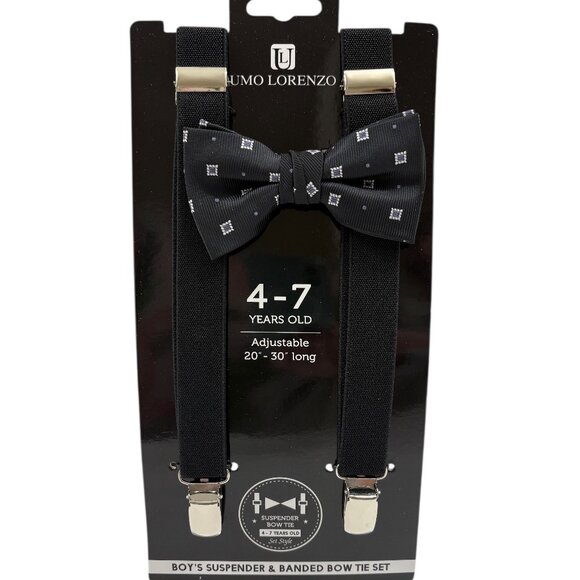 Bow Tie and Suspender Set - Boys 4-7 YRS OLD- NWT - Black W/ Silver Squares