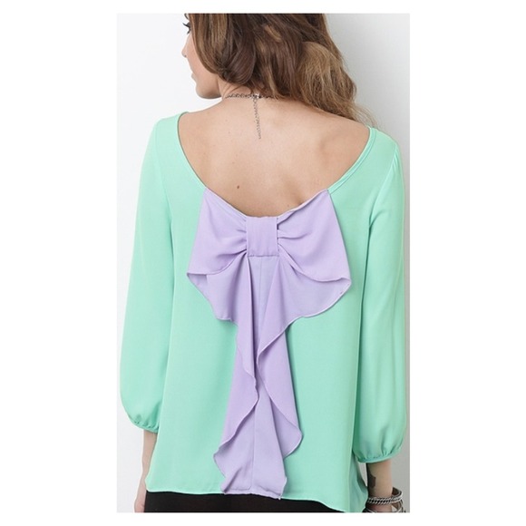 New Lavender/mint bow back top, dress up or dress down. I have a medium and large! CAN DO $26 shipped with paypal payment :)