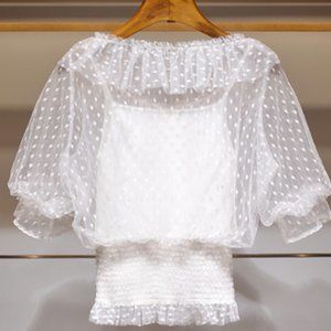 Spring new style bowknot wave point knit false two lantern sleeve lace unlined upper garment