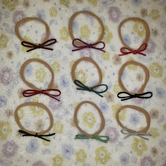 9 handmade bows on nylon bands. All different colors.