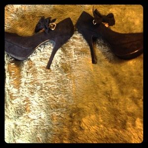 Only worn once, like new, black color, bow very cute, I think the inch of the heel is 2 1/2 inches not very sure tough. Size 9.