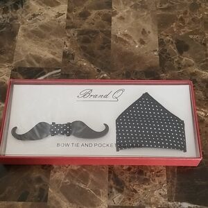 Mustache bow tie made of wood,with dotted fabric,brand new in the box🧔🤳