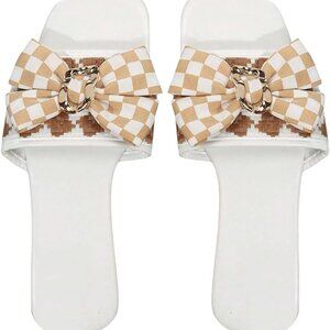 ~Fashion plaid print and lovely knot bow design make these women's single band sandals very attractive and modern