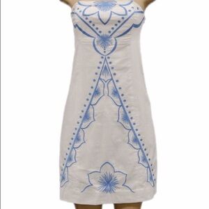 "Bowen" White & Blue Embroidered Strapless Dress