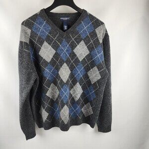 Bowen & Wright Sweater Mens Large 100% Lambs Wool Multicolor Argyle V-Neck