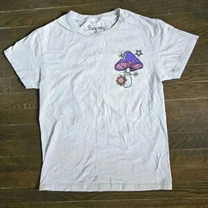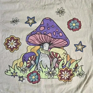 Bowery Supply Co Mushroom Graphic T-Shirt beige women's size Small