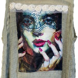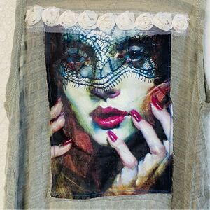 Bowie Vintage High Low Lace Rosettes Portrait Detail Tank Top Sz L