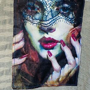 A portrait is seen on the front & adorned with tulle rosettes (on the neckline as well) and is oversewn with thread (please see photos)
