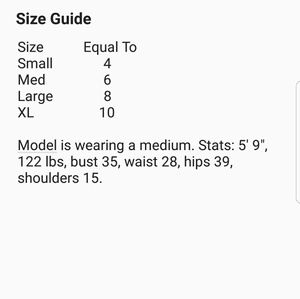 I am simply in love with the classic striped tee - it's such a gorgeous shade to pair with blue jeans! The front features a casual scoop neck with stripe print, while the back features a lovely cutout bowknot design. This beautiful long sleeved tee will keep you looking fabulously chic while having a wonderful day with friends and family! See final photo for size equivalents and model info.