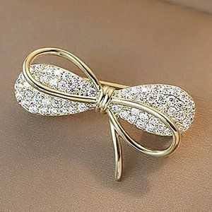 Bowknot Rhinestone Brooch Pin Lapel Gold Bow Sparkle Glam Simple Mimimalist GIFT