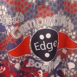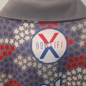 Bowlifi men's XL customized bowling button polo. 100% polyester. Is it amazing or ridiculous...I don't know! Please note 2 small marks on the collar of this polo (picture #7). Please see pictures for measurements and details of this fun polo.
