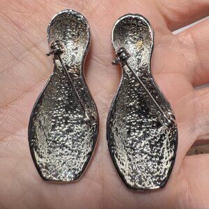 Each brooch measures approximately 2 inches high and 0.75 inches wide at the widest point. Both are in excellent vintage condition with no flaws noted. Unsigned. Secure pin backs and ready to wear or display.