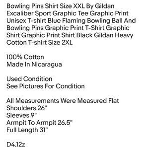 Bowling Pins Shirt Size XXL By Gildan Excaliber Sport Graphic Tee Graphic Print Unisex T-shirt Blue Flaming Bowling Ball And Bowling Pins Graphic Print T-Shirt Graphic Shirt Graphic Print Shirt Black Gildan Heavy Cotton T-shirt Size 2XL
