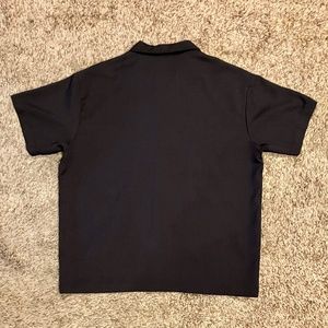 Classic two-tone black shirt with golden tone panels and detailed stitching.