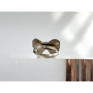 Silver toned bowtie vintage ring. Straight shank with a gorgeous bow as the head. Polished and ready to be worn. So pretty and in excellent shape.