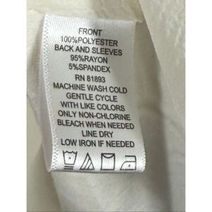Excellent used condition - front sheer poly with back and sleeve rayon blend