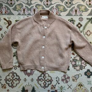 Sold out muslin box bomber from this season. Beautiful iteration made from Rambouillet wool and coyote foxfibre coyote cotton. Luminous light brown tone with a hint of grey (photos 3 & 4 most accurate), lightweight but warm. EUC with a tiny amt of fuzzing here & there. Flexible fit.