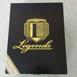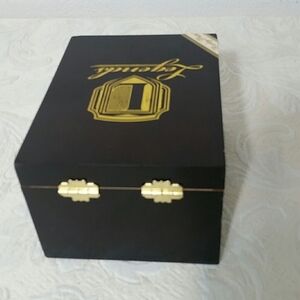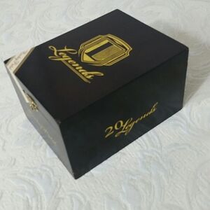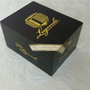 Legends Rocky Patel brand cigar box stained wood with gold lettering 6 inches L x 4.5 inches W x 3.5 inches deep. These cigars have been discontinued so this is a rare collector item.