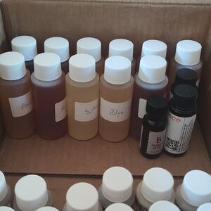 Included in this listing are 35 full 1oz sample sized and 2 oz bottles (24, one oz & 11 two oz bottles) of fragrance oils for soap, potpourri, candle making, ect. All from Cierra Candle Company, Candle Science.com, Brambleberry and an incense shop I ordered from online via Offer Up. All of these scents are not for me, but maybe they are for you?