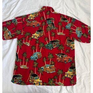Box Office Island Classic Hawaiian Button Up Shirt Men's Size Large Cars Surfboa