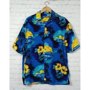 Box Office Island Men's Aloha Blue Hawaiian Shirt Size L Surfer Excellent Cond