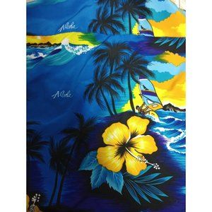 Box Office Island Men's Aloha Blue Hawaiian Shirt Size L Surfer Excellent Condition.