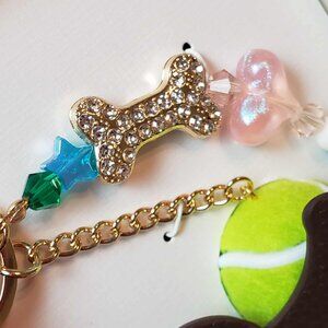 Boxed * PIPER K * Dachshund Dog Tennis Ball • Beads • Rhinestone Bone Bag Charm