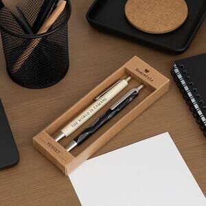 Stylish gift ready set of 2 Ballpoint Pens beautifully presented in a sleek gift box. These pens feature medium tips (1.0mm) for smooth, consistent black ink flow that's perfect for daily notes, signatures, or journaling.