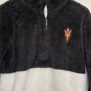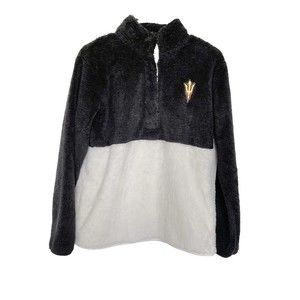 BoxerCraft Fuzzy Cozy Fleece Pullover Sweater Black White Mid Button Sports Size XS