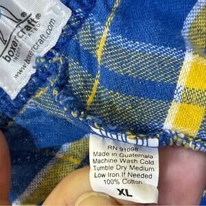 Boxercraft, Blue and Yellow Plaid Flannel Pants. Paw Prints on the butt. Size XL, in good used condition! Stylish plaid pants. Features a vibrant blue and yellow pattern. Comfortable and trendy.