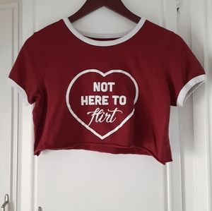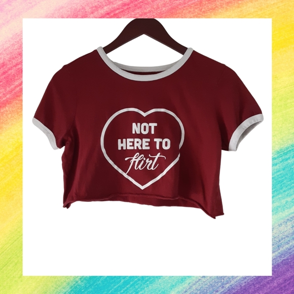 Red Boxercraft crop tee with phrase: "Not here to flirt"