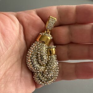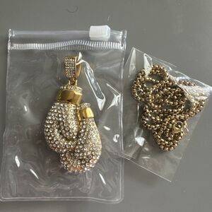 Boxing Gloves Pendant Gold Plated Stainless Steel 24 Inch Chain Zirconia Boxer
