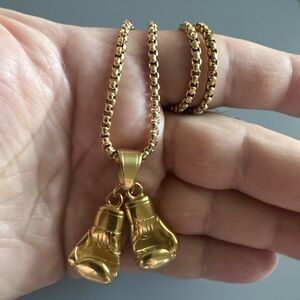Boxing Gloves Pendant Gold Plated Stainless Steel 24 Inch Necklace Boxer Gift