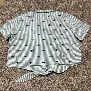 Boxlunch Her Universe Disney Aladdin Lamp stripe Womens Tie-Front Woven Top L