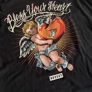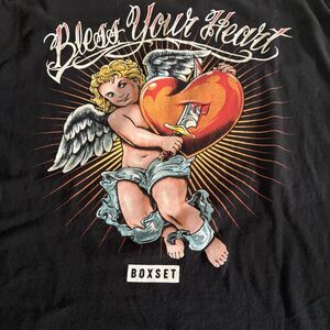 Boxset Mens Black Tee Shirt Large "Bless Your Heart" Graphic Cherub Angel Biker