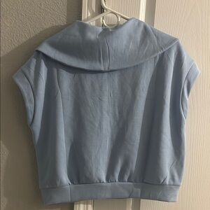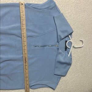 This blue top showcases a boxy silhouette with ribbed detailing, adding a contemporary flair to the classic polo design. The ribbed texture enhances its visual appeal, while the polo collar lends a sophisticated touch. Ideal for casual wear, this sweatshirt effortlessly blends comfort with style.
