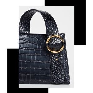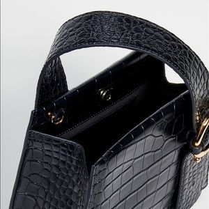 Trendy crocodile pattern crossbody handbag with hints of gold with PU leather shoulder strap.