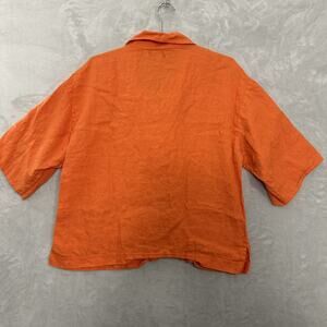 Boxy Linen Popover Shirt Collared Orange Fall Artsy USA Vtg Women’s Medium